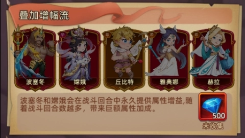4、叠加增幅流:波塞冬+嫦娥+丘比特+雅典娜+赫拉,让你的属性随着战斗的回合数而暴增。