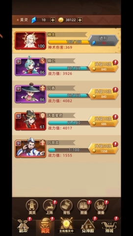 英灵堪称你驰骋战场的得力伙伴,其品质分为紫色、橙色与红色。想要顺利推进关卡,关键就在于持续对英灵进行升级与进阶。需留意,英灵的等级会受神主等级的制约,所以,提升神主等级无疑是你优先要重视的事情。此外,提升英灵的装备与星级,能大幅增强他们的战斗力。