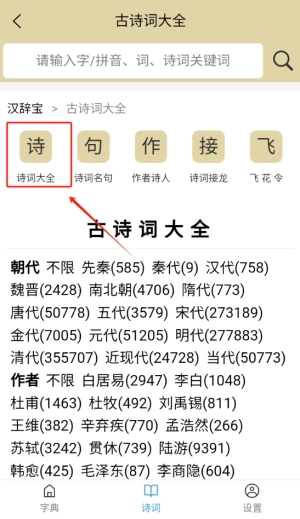 2、在搜索框中输入相关关键词,快速找到感兴趣的诗词和作品,提升检索效率。