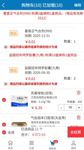 2、用户还可以将需要采购的药品直接加入购物车,方便随时查看和结算。