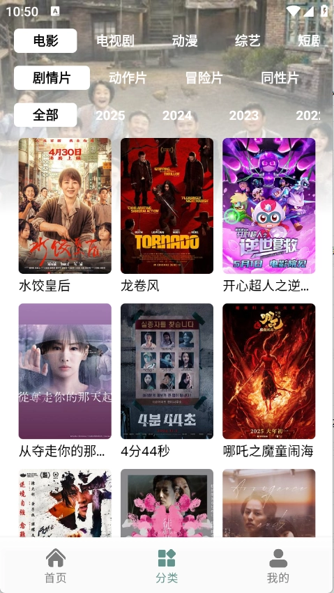 3. 在“分类”页面,能够依据类型、题材、时间等条件展开筛选。