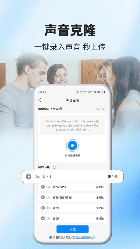 3、创建个人声纹库时,按提示朗读不同情感基调的语句,可获得更自然的克隆效果。