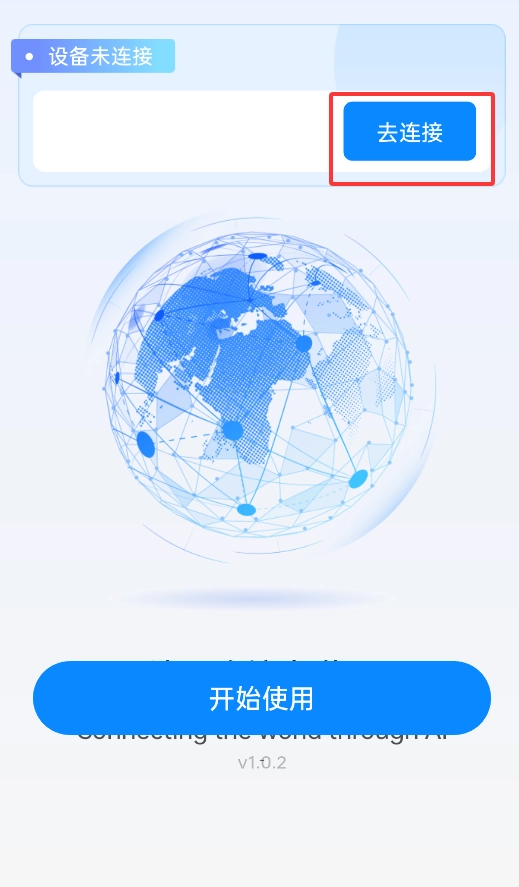 1、启动APP后,点击状态栏的"未连接"提示,进入设备管理页面。