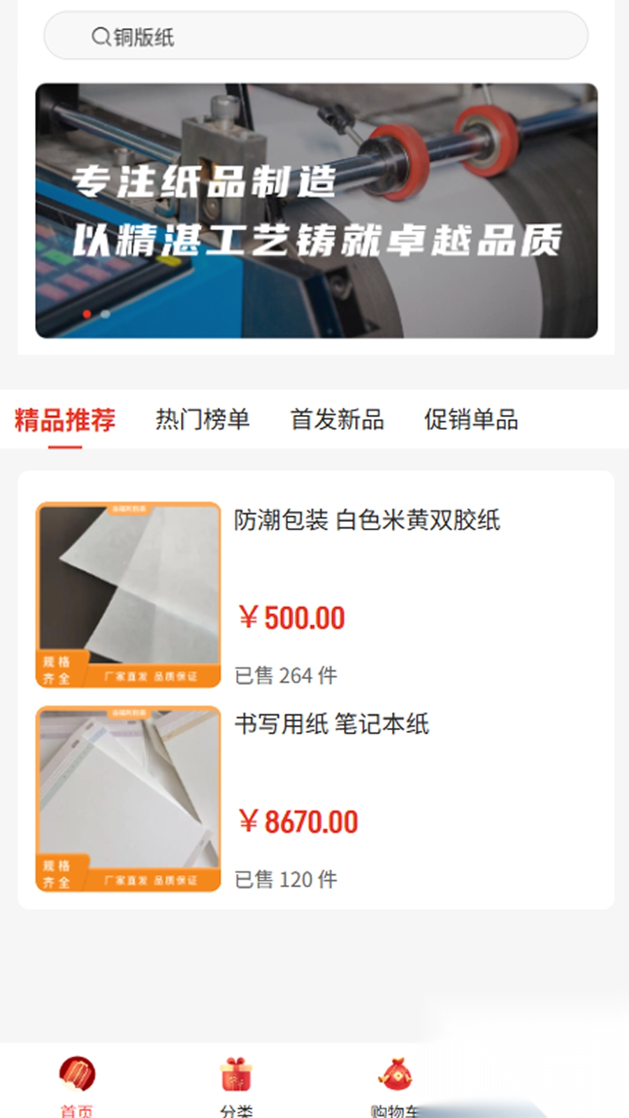 1. 借助数据统计呈现精品推荐与热门商品,助力用户迅速发现优质或畅销的纸品包装。