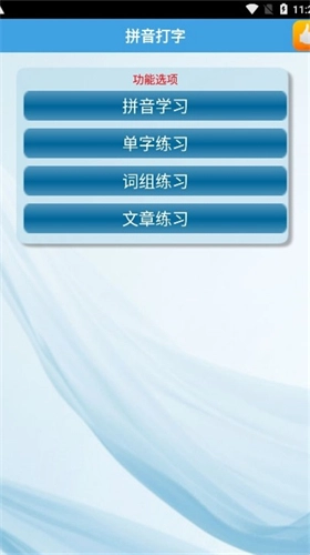 3、只需点击屏幕下方的拼音按键,就能进入拼音打字练习界面,在此界面可开展拼音、单字、词组以及文章的练习。