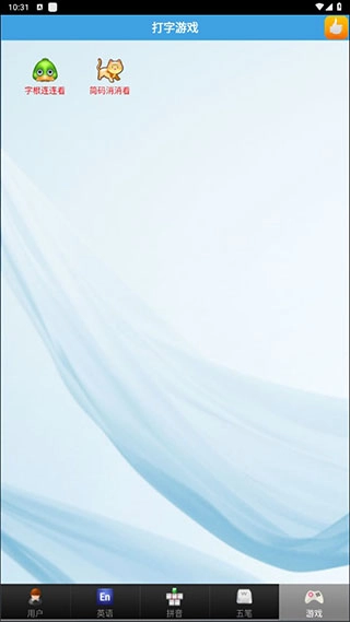 5、轻点屏幕下方的游戏按键,就能进入游戏打字练习界面,这里有“字根消消看”与“简码消消看”两款游戏,等你来体验。