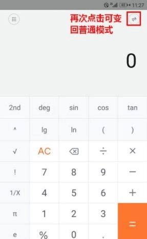 2、点击右上角图标切换为“科学计算器”界面;