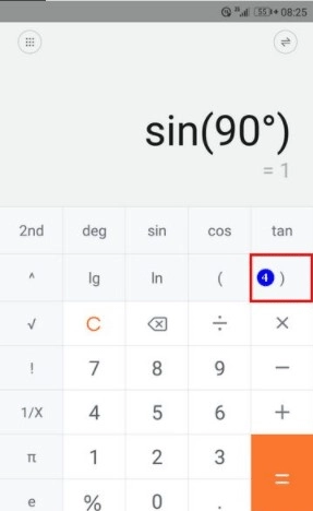 1. 三角函数操作步骤:点击sin(,接着输入角度90,系统自动补全,再输入),随后得出结果。