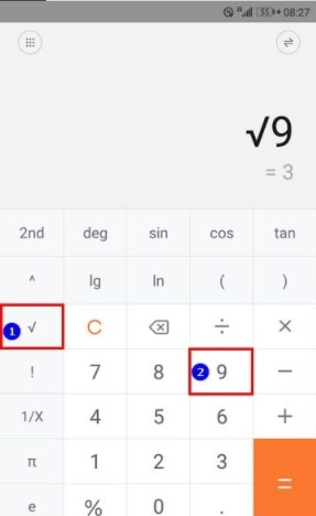 3、平方根运算:点击 √ → 输入 9 → 显示结果 3。