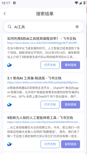 4、除了可以复制搜索结果的链接之外,还能够打开文档。