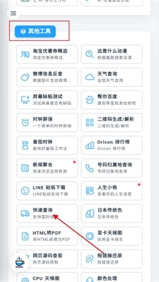 1. 打开米库工具箱首页,向下滑动页面,找到【其他工具】板块,点击其中的【快递查询】功能按键,随即就能进入物流追踪界面。