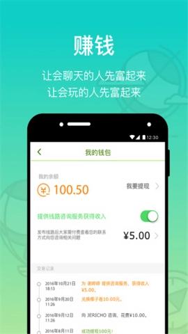 一旦你发布的路线成功吸引他人关注,那么所有的咨询付费,都将归你所有,金额满百元就能提现。