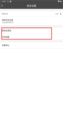 5、在设置页面可以更换主题颜色以及调整字体大小