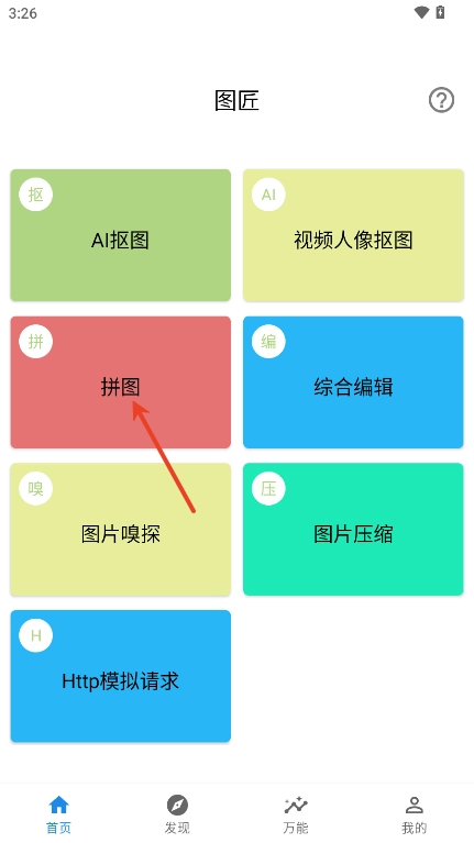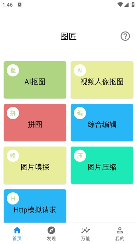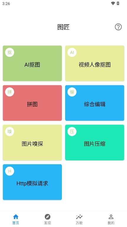 1、在本站下载并安装软件,打开软件进入,进入首页后,便能看到AI抠图、视频人像抠图、拼图、图片嗅探、图片压缩等功能服务。