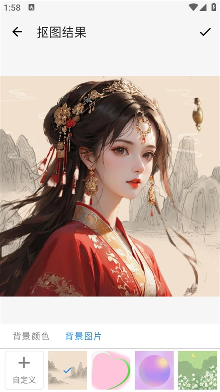 3、挑选人像抠图功能,选好图片后,一键操作即可快速为您完成抠图,同时还能切换不同的背景图片或颜色。