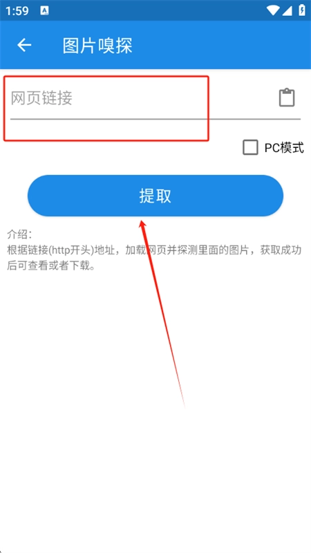 4、通过点击图片嗅探功能进入,仅需输入网页链接,即可快速为您提取图片。