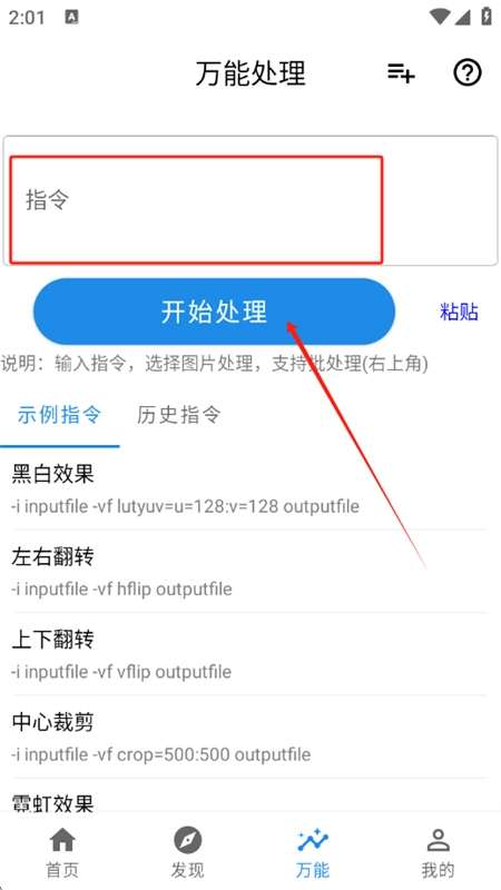 5、在具备万能处理功能的页面上,仅需输入您的指令,然后点击“开始处理”按钮就可以了。