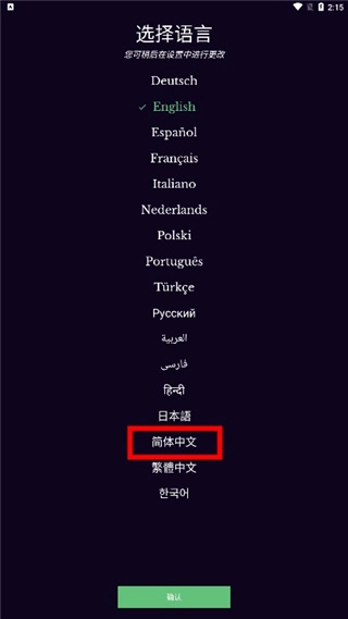 1. 下载软件后首次打开,可选择自己心仪的语言,接着点击确定。