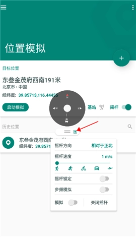 4、点击指南针下方的图标,能够调出控制摇杆的各项指标,例如摇杆方向、摇杆速度等。