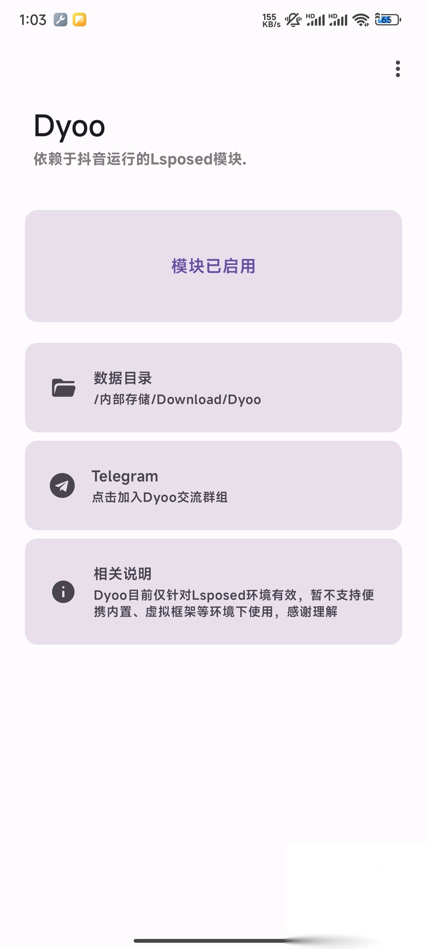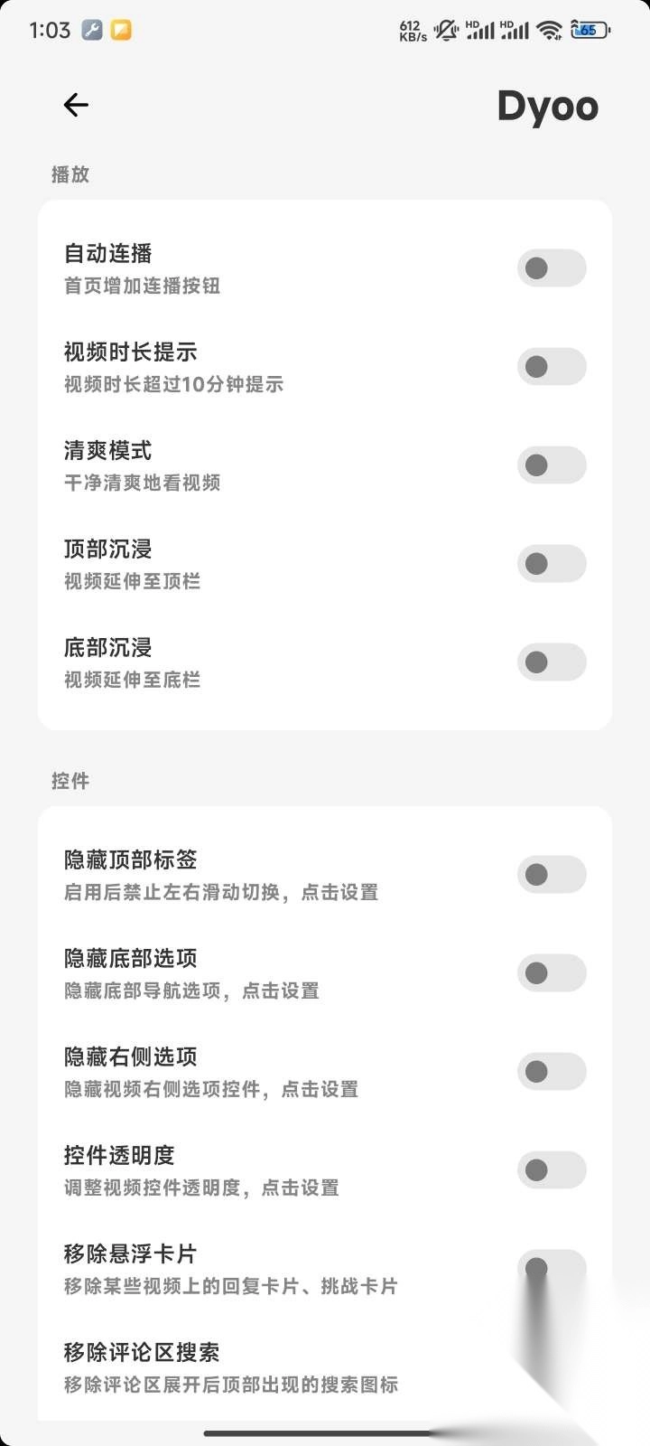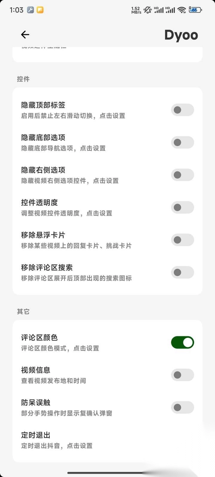 2、打开抖音加强模块(Dyoo)中设置相关选项。