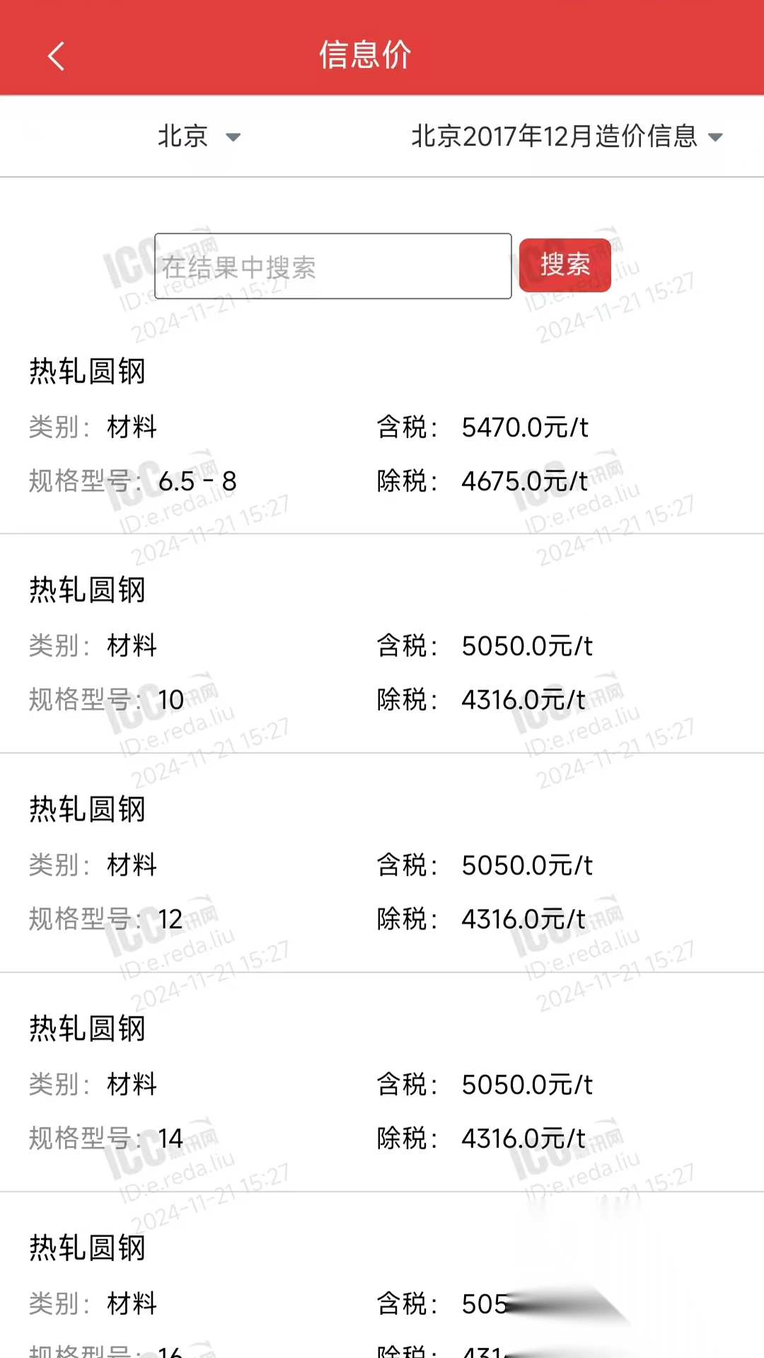 4、在信息价页面,可以及时了解产品价格的详情。