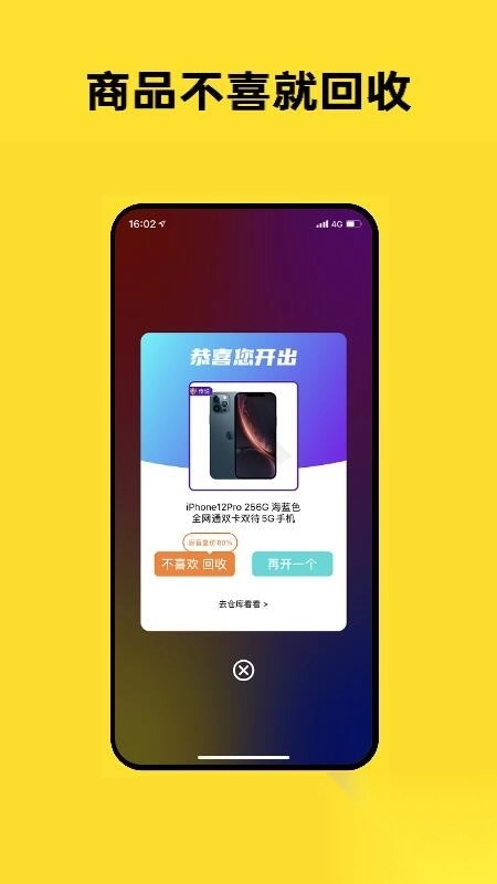 3.如果在盲盒之中开启的商品,用户不满意的话,可以直接将它回收退回。
