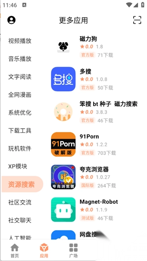 3、点击应用板块,这里将资源进行了详细的划分