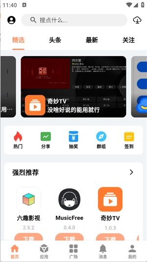 2、打开进入软件,在首页中推荐了一些热门应用