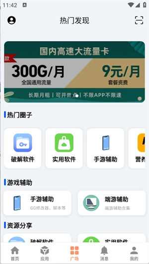 5、点击广场板块,这里有着许多实用的工具