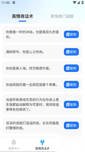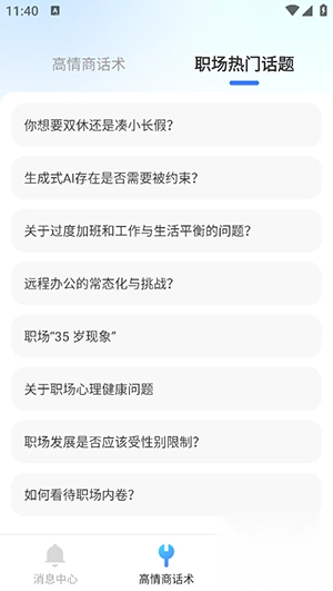 1、提供热门话题资讯,让您紧跟潮流;更有高情商话术库,助您轻松应对各种社交场景。