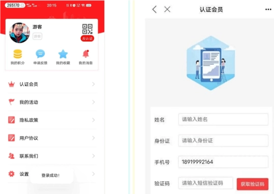 5、若为未认证会员,可选择“认证会员”功能,接着填写个人信息,并获取手机验证码。