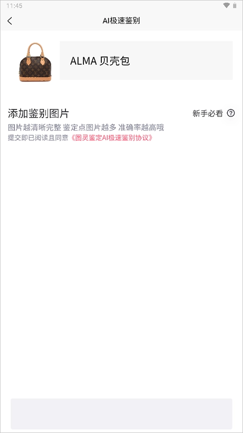 5、此时你只需上传待鉴别的物品图片,就能进行鉴别啦。需要注意的是,图片越清晰完整,鉴别结果就越准确哦。