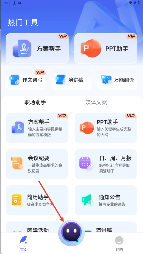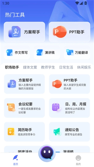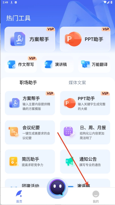 1. 进入ai写作帮的主页,轻点页面底部的按钮。