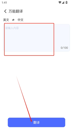 5、选取万能翻译功能,录入期望翻译的内容,轻点翻译,便能迅速得到答案。