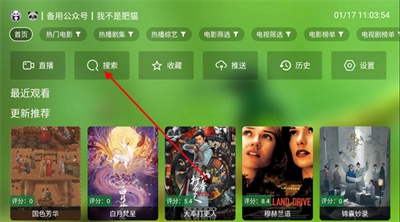 3、点击箭头所指的“搜索”,输入关键词进行精准检索,找到您喜欢观看的电视频道。