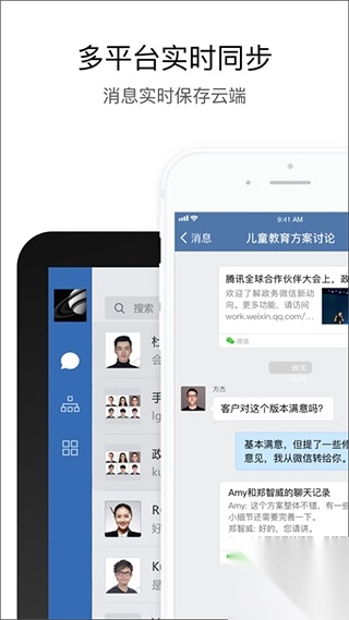 1、可以移动化的聊天,互动,可以保障企业内部信息的安全。