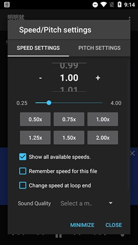 1、可依据自身需求,灵活调节音频播放速度,适用于音乐听写、乐器练习、舞蹈课程以及语言学习等多样场景。