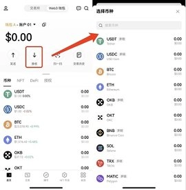 点击“接收”,搜索您要交易的币种,进入详情页获取收款地址。