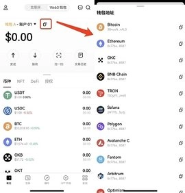 选择您要进行交易的网络对应的钱包地址。