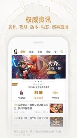 3、玩家能够便捷地浏览官方资讯动态,观看赛事直播,进行分享与投屏操作,逛BBS,查看英雄排名等,助力玩家更深入地了解游戏并与其他玩家展开交流。