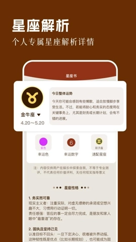 2、只需轻松点击,即可获取个人星座信息与运势分析,助力用户更深入地了解自身性格及运势变化。