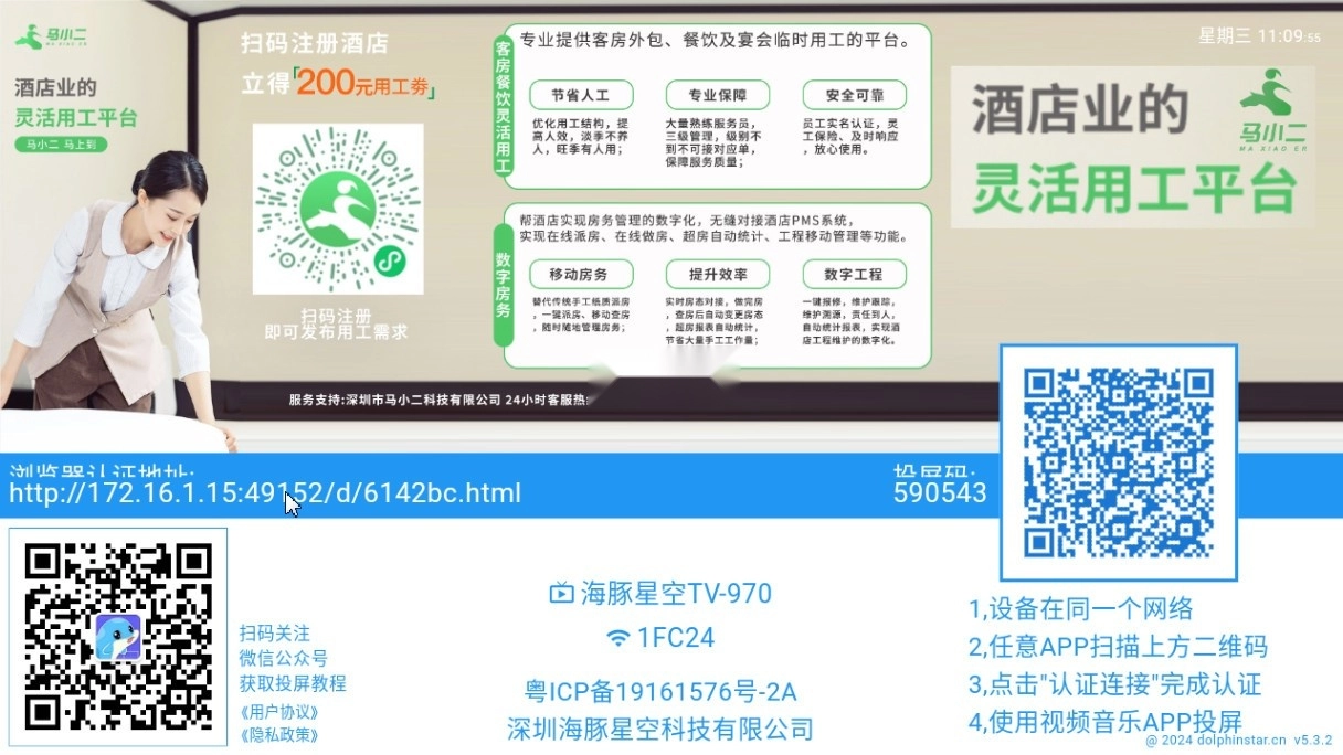 2、支持电脑办公投屏、酒店投屏、办公投屏、电脑投屏。