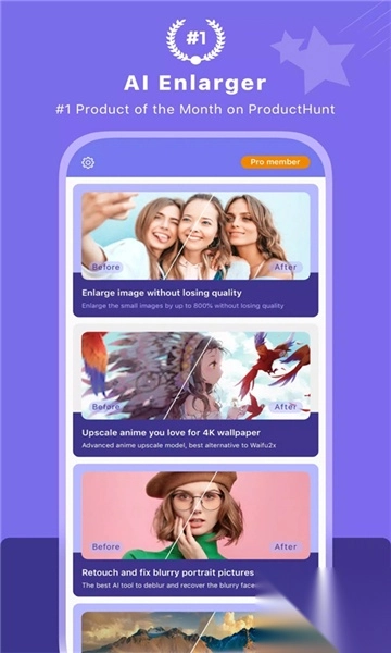 画质2x(AI Enlarger)安卓版本,堪称一款实力强劲的AI图片无损放大神器。它能够实现2x、4x、8x不同比例的放大操作,对于照片、动漫图片、游戏截图等各类图片均适用。就算是那些模糊不清或者已经像素化的图片,借助画质2x所搭载的AI智能锐化、降噪以及面部修复技术,也能摇身一变,成为高清且细腻的图像。 这款软件在图片格式支持方面也十分广泛,像JPEG、PNG、BMP等常见格式都不在话下。在处理图片过程中,它会自动对细节进行修复,强化色彩的表现力,进而提升整个画面的清晰度。而且,画质2x的操作极为简便,极易上手,无论是新手还是老手,所有用户都能轻松驾驭。