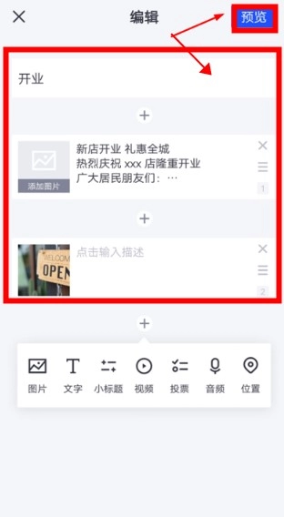 4. 在编辑界面中,你能够对文本、图片、布局等各类元素进行修改,并依据自身需求对每一项内容加以调整。完成调整后,点击“预览”按钮,即可查看最终呈现的效果。