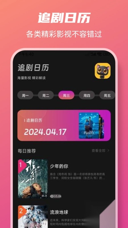 1. 拥有最全面的追剧日历,连载内容何时上新,我们都能提前知晓。