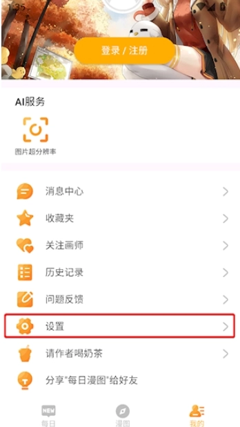 1. 开启每日漫图app,寻觅到要下载的图片,轻点图片进入预览页面。