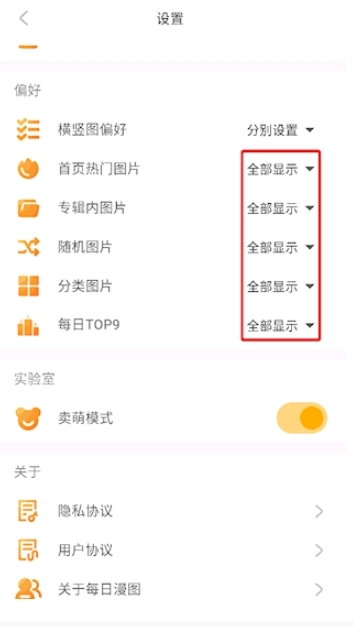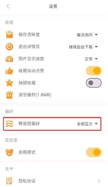 2、点击横竖图偏好右侧的全部显示