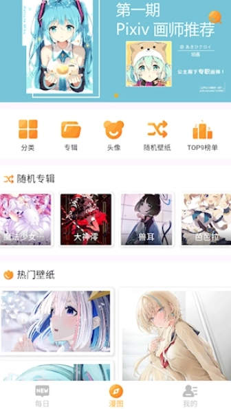 1. 打开app,就能挑选各类漫画图片与头像。