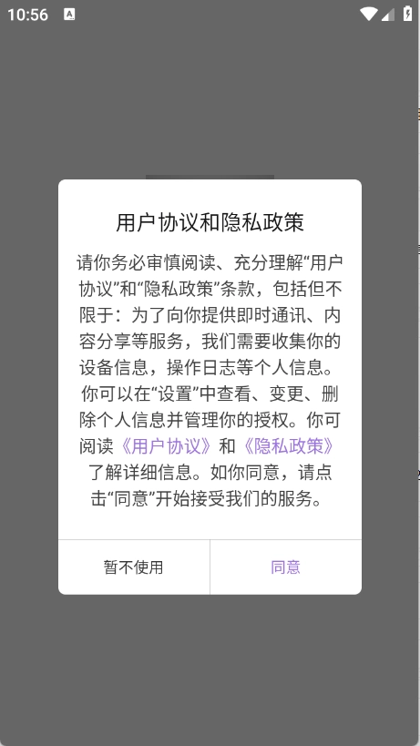 1. 开启软仓工具库App,仔细查看隐私政策与用户协议后予以同意。