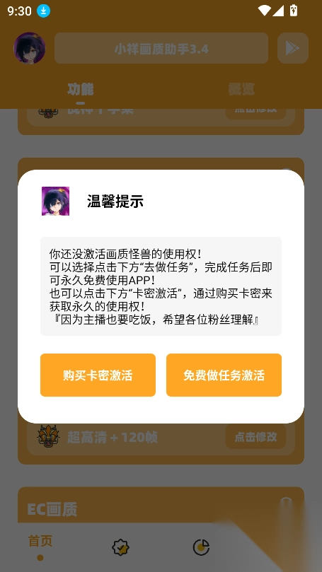 2、可以通过购买卡密,或者完成任务等方式来获取激活权限。